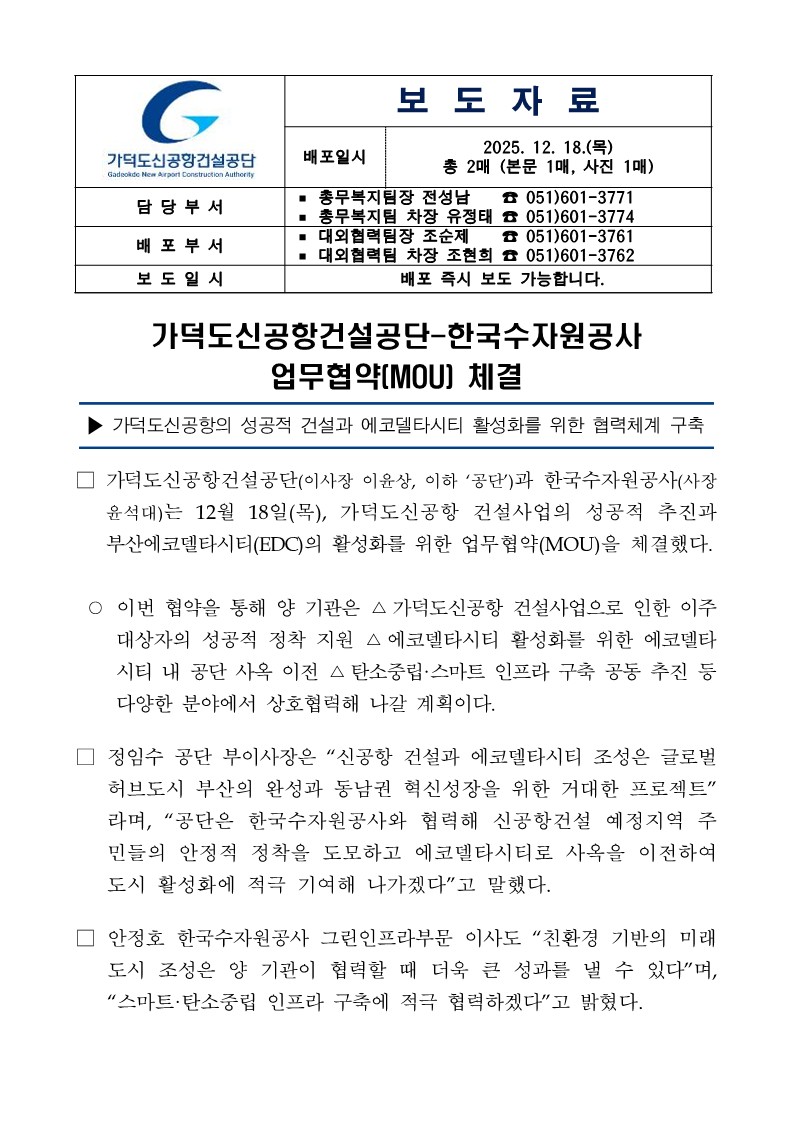 251218_가덕도신공항건설공단-한국수자원공사 업무협약(MOU) 체결.hwp